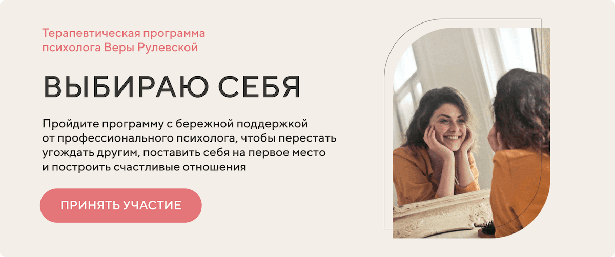 Вера Рулевская. Психолог, специалист по работе с психосоматикой. За 9 лет частной практики помогла тысячам женщин избавиться от тяжелых заболеваний, наладить отношения и улучшить качество жизни.